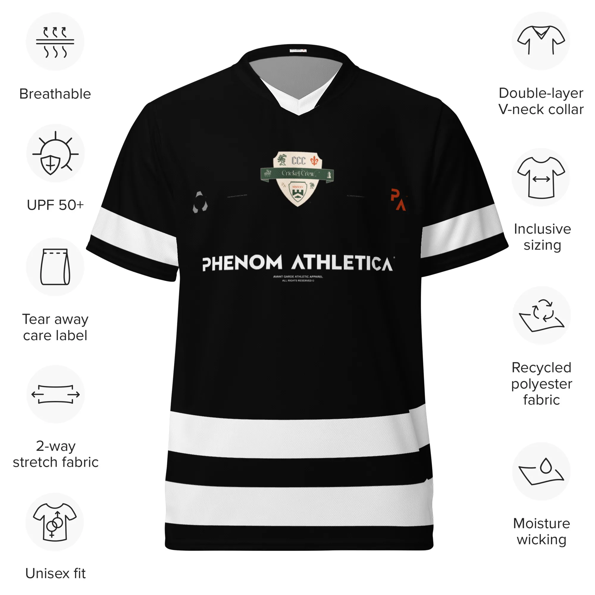 Precision-engineered for the modern cricketer, the Phenom Athletica® Cricket Jersey blends heritage with high-performance innovation. Crafted from 100% recycled polyester, this jersey is powered by VaporLift™ Tech, delivering elite moisture-wicking capability, breathability, and UPF50+ protection—so you stay cool, dry, and focused through every over.