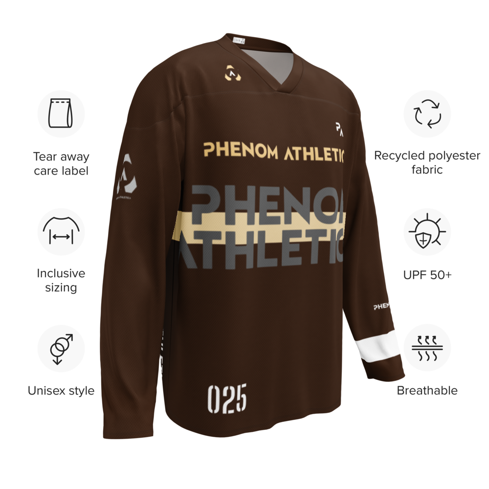 Engineered through our signature Phenom Athletica design language, the HyperHockey™ Jersey is more than team gear—it’s a tribute to the discipline, respect, and relentless spirit that define true sportsmanship. Every detail has been purpose-built to elevate performance while honoring the integrity of the game.
