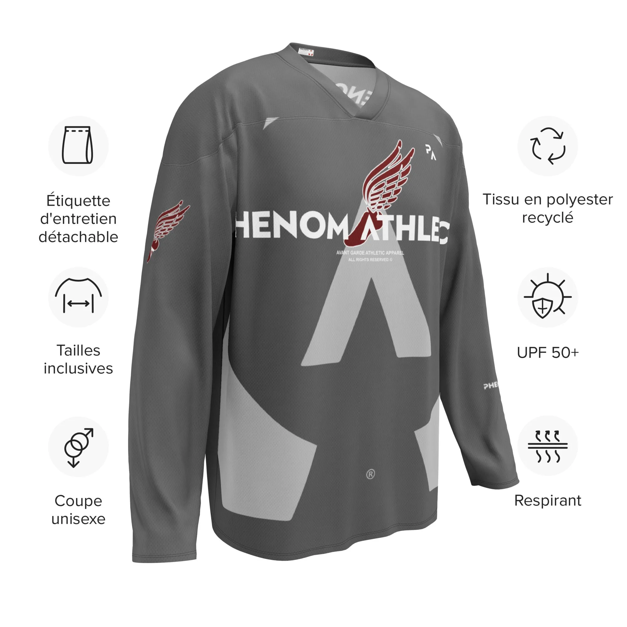 Infused with the spirit of history’s most revered athletes, the HyperHockey™ Hermes Edition draws inspiration from the Wings of Hermes—a symbol of speed, grace, and enduring dedication. Designed through our signature Phenom Athletica lens, this jersey blends performance engineering with a deep respect for the timeless values of sport: excellence, honor, and relentless pursuit.