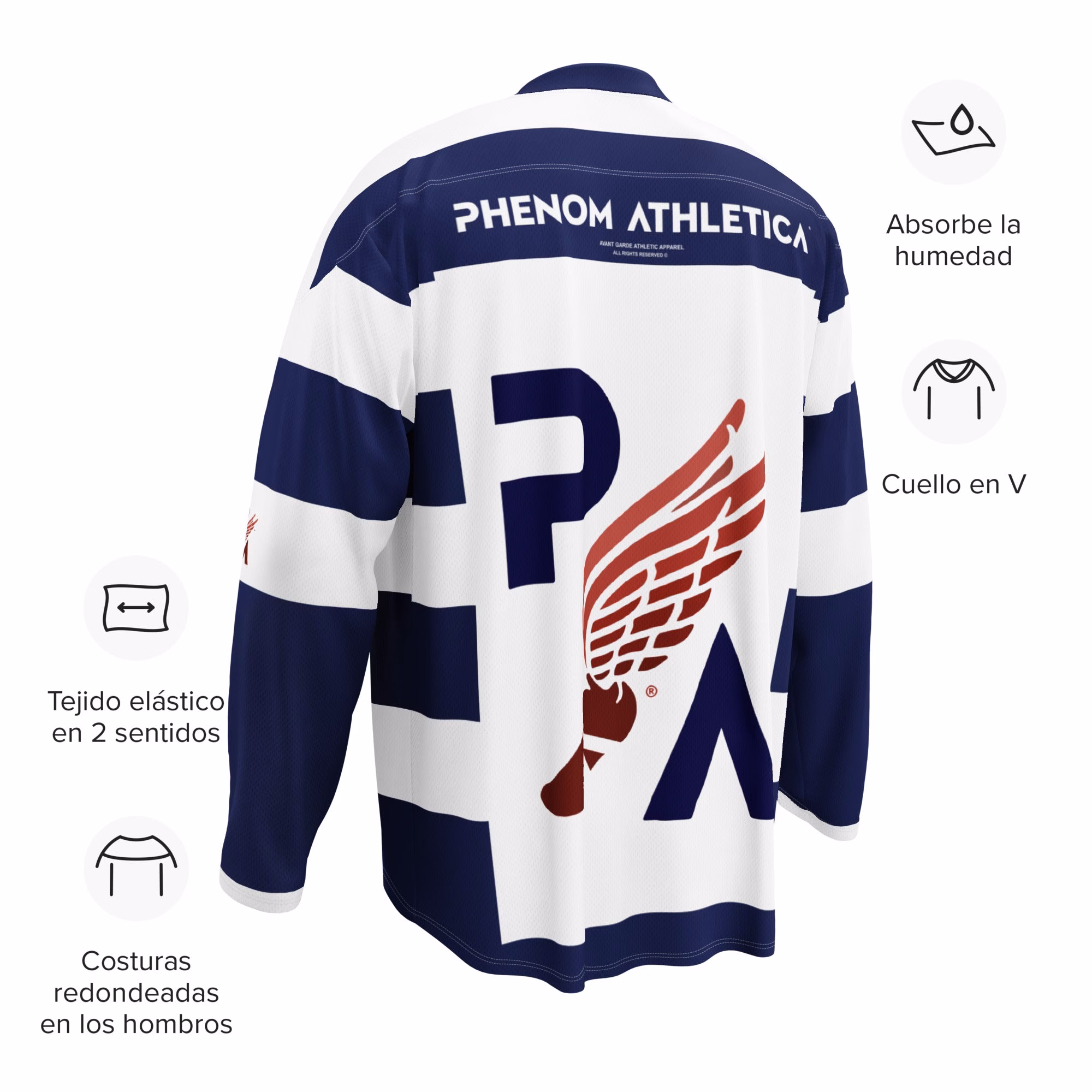 This Phenom Athletica® Ice Hockey Jersey is Meticulously Crafted with Cockey-Specific Construction for an Authentic Arena Experience, this Jersey caters to every Hockey Enthusiast, Fan and Sportsperson. Unifying team style