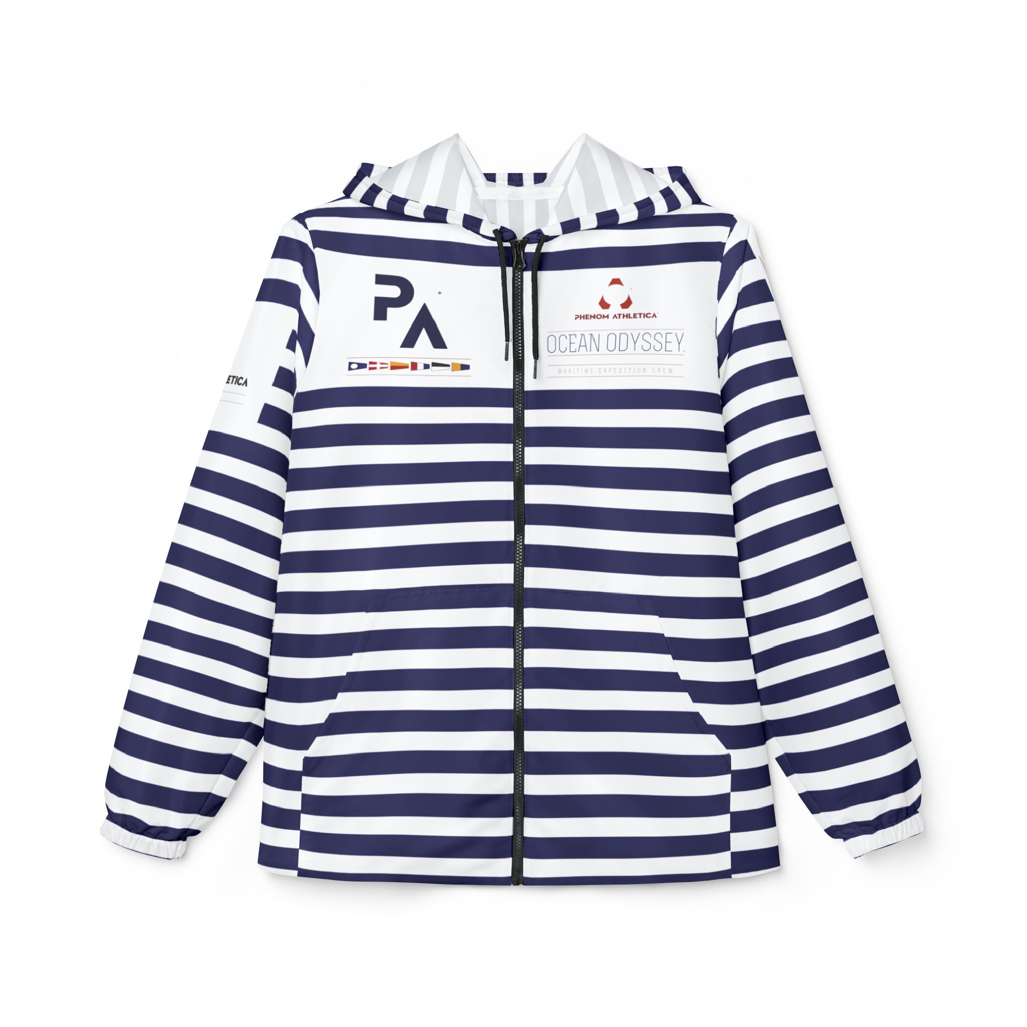 This Phenom Athletica® Ocean Odyssey™ Windbreaker Jacket brings Heaps of Aesthetics into any wardrobe. Available in 6 Sizes for that Perfect Fit, these Jackets feature Black Zippers and Strings. Meanwhile, the Two Front Pockets add Extra Practicality points to what’s already a Daily Staple.