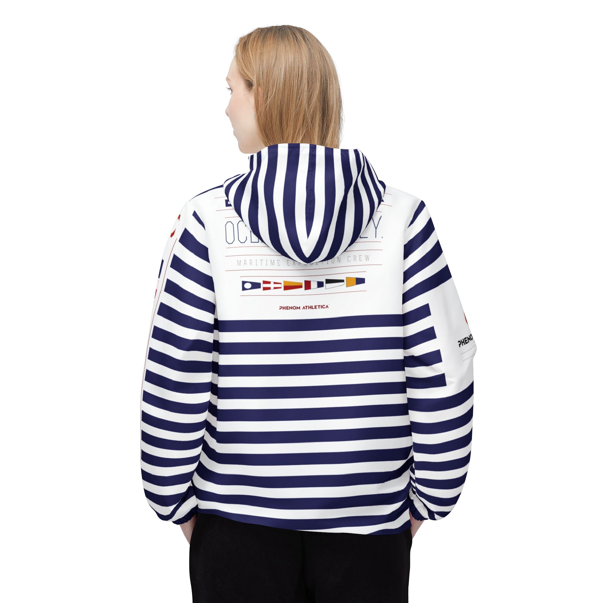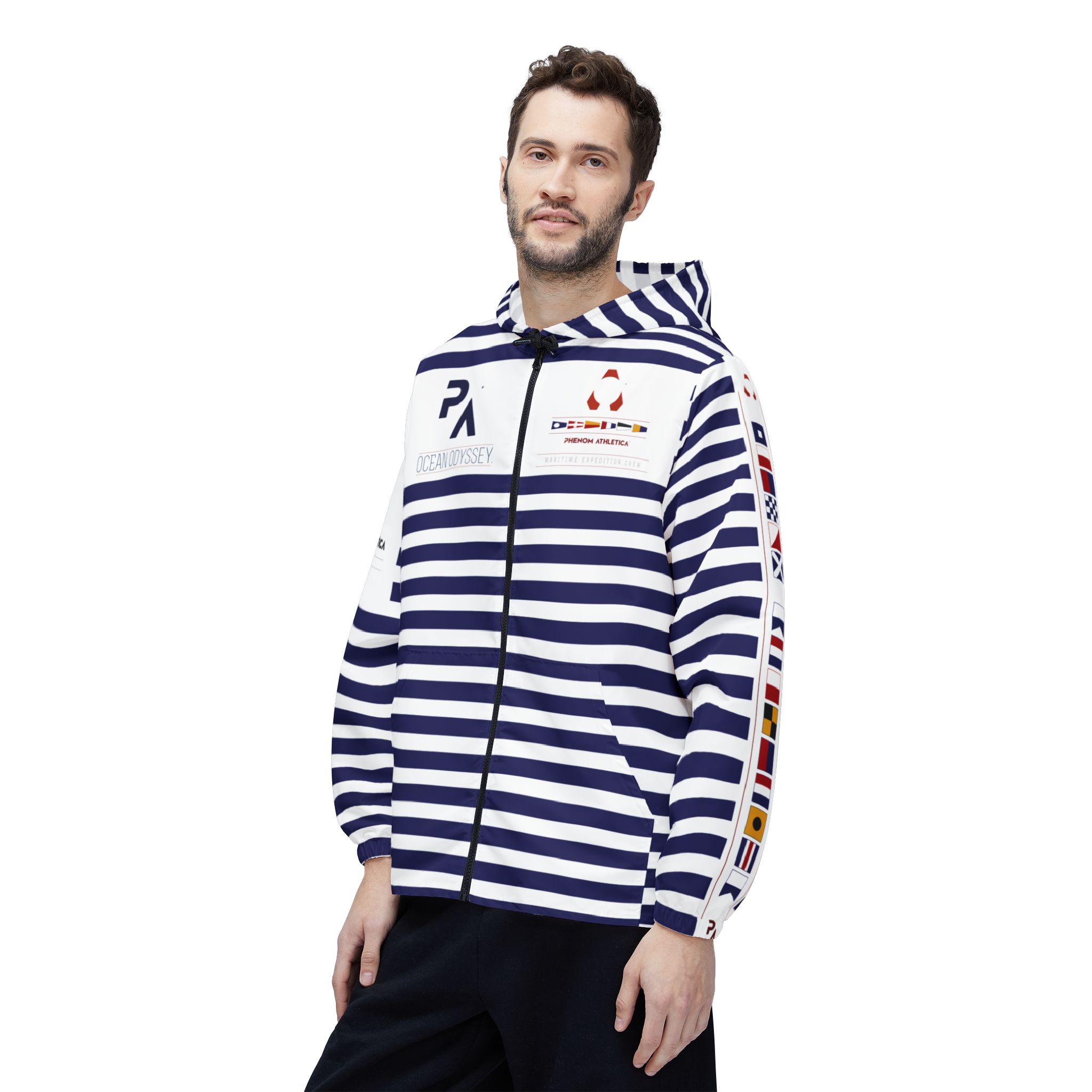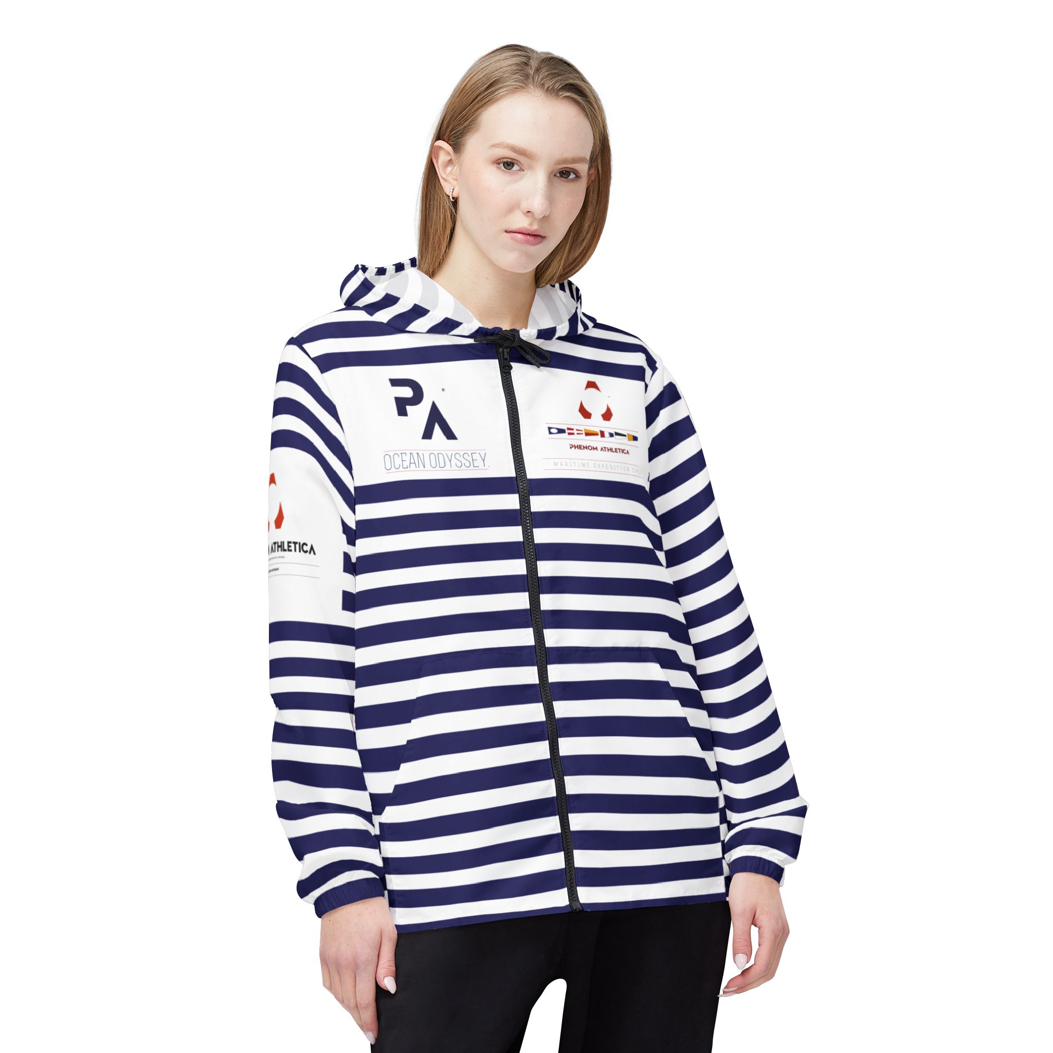 This Phenom Athletica® Ocean Odyssey™ Windbreaker Jacket brings Heaps of Aesthetics into any wardrobe. Available in 6 Sizes for that Perfect Fit, these Jackets feature Black Zippers and Strings. Meanwhile, the Two Front Pockets add Extra Practicality points to what’s already a Daily Staple.