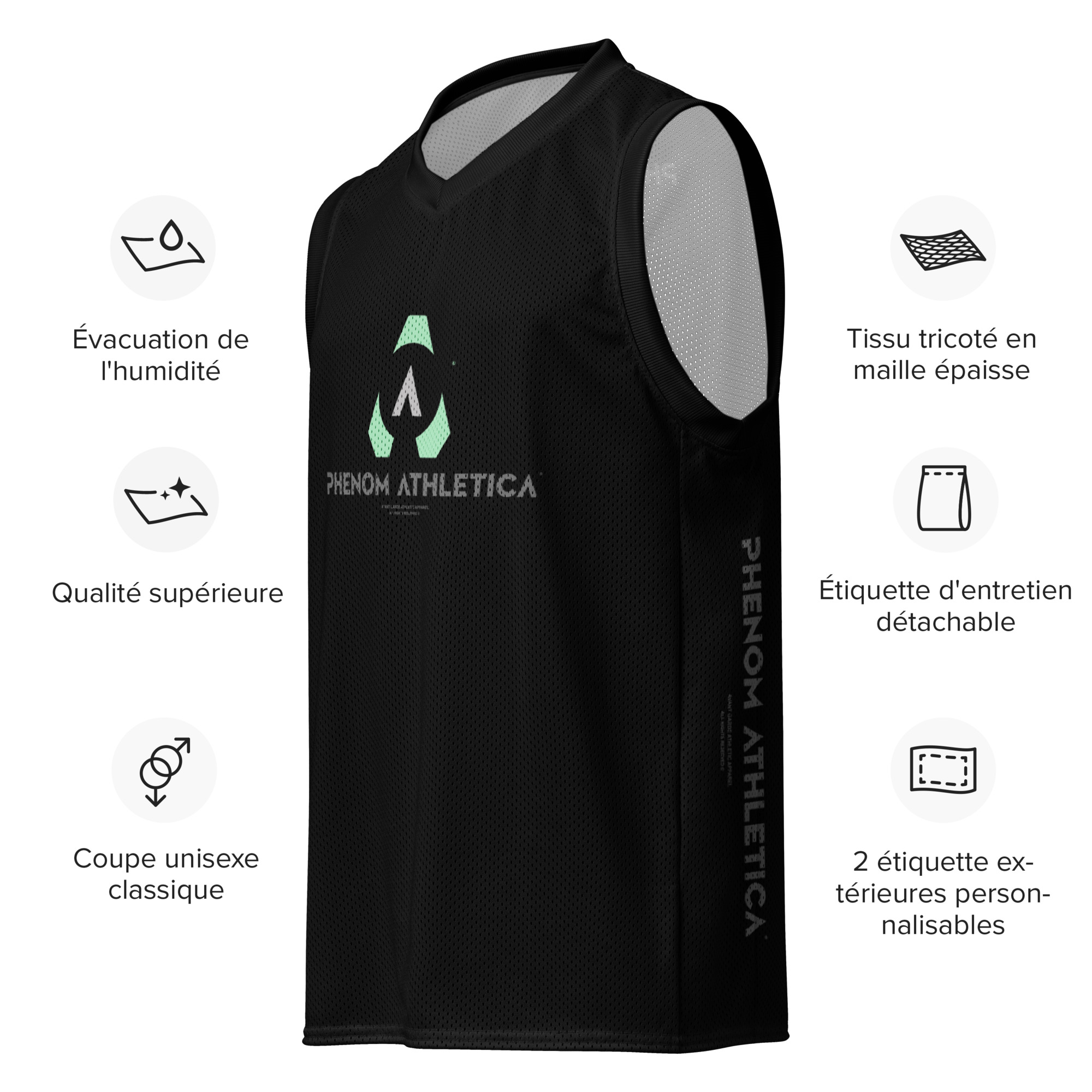 The Ball & Hoop Basketball Jersey by Phenom Athletica® is a declaration of flight — designed not just for the athlete who plays, but for the one who ascends. Crafted from ultra-lightweight, moisture-wicking performance polyester, it delivers the precision fit and breathability demanded by today’s fast, vertical, and high-intensity game.