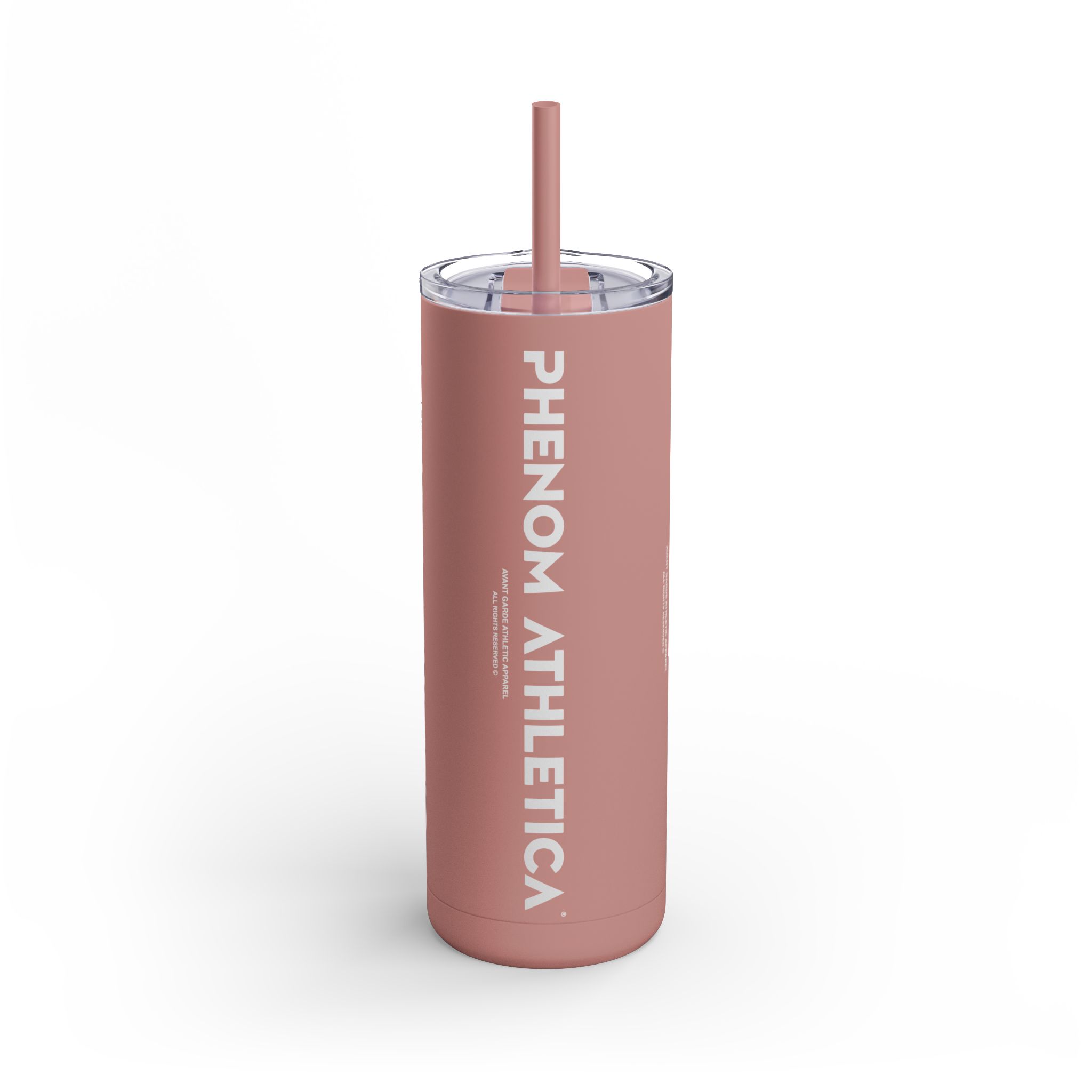 The Phenom Athletica® x Maars Maker® Skinny Matte Tumbler in 20oz is the perfect get-along for any excursion or casual day out. Made with double-wall, food-grade stainless steel, these tumblers keep drinks hot for 12 hours and refreshingly cold for a stunning 24 hours. The powder-coated exterior with its smooth matte finish is a pleasure to the touch while the non-tapered shape with the slim design make it highly practical and stylish. The plastic screw-on slide lid with the color-matching straw add extra practicality points. All materials used for this tumbler are non-toxic and BPA-free.