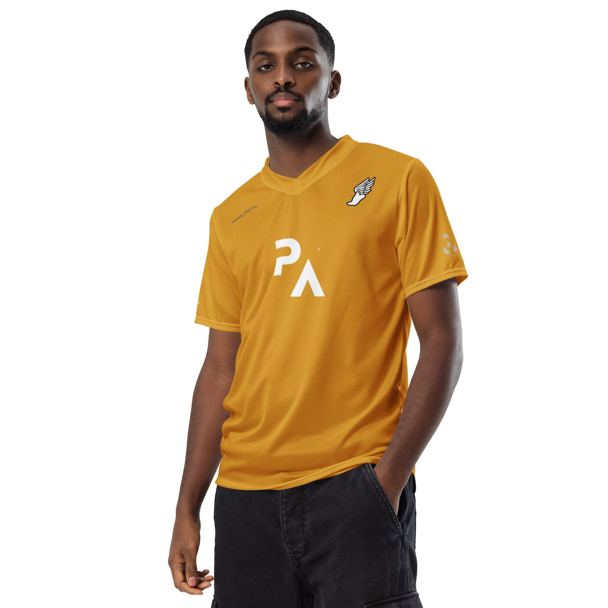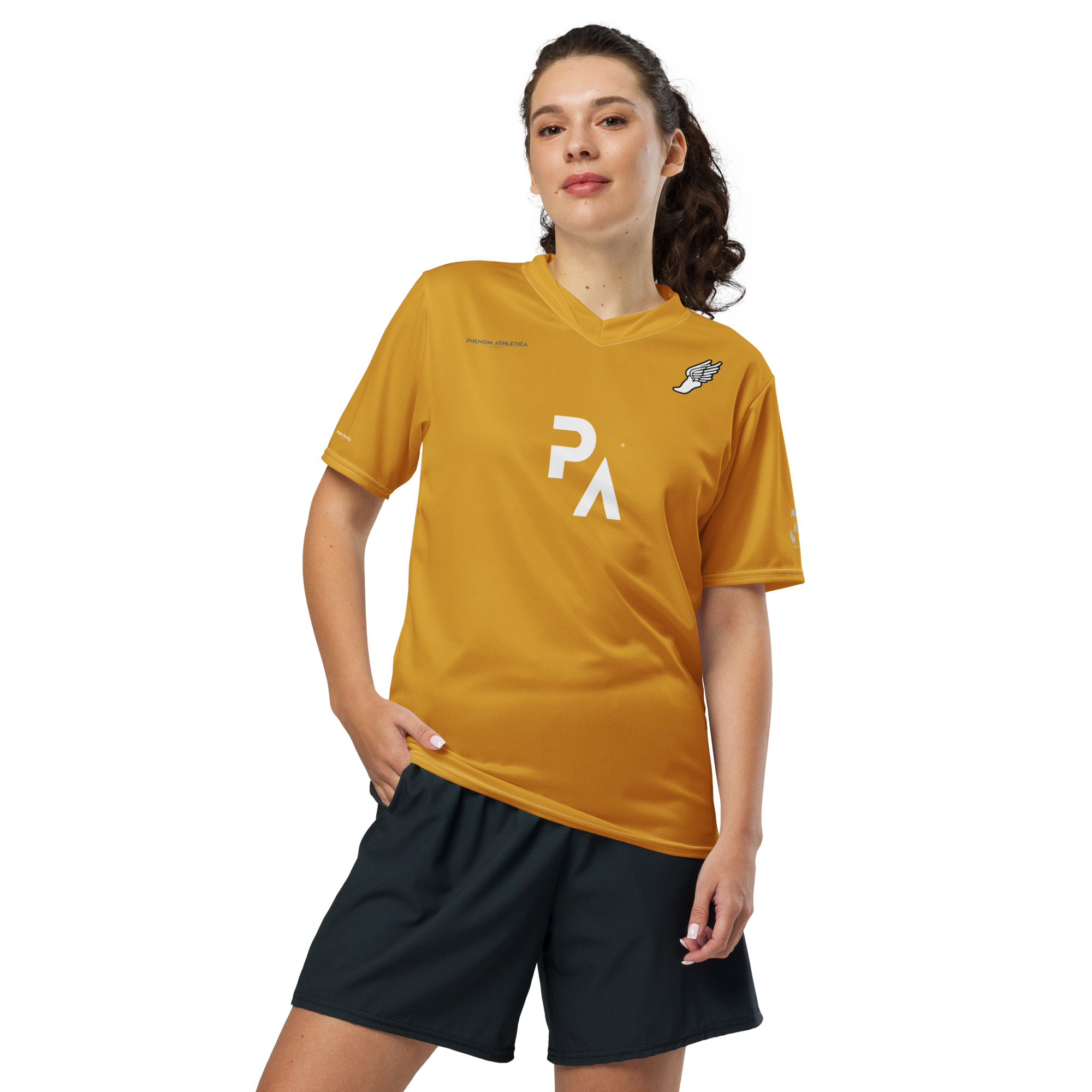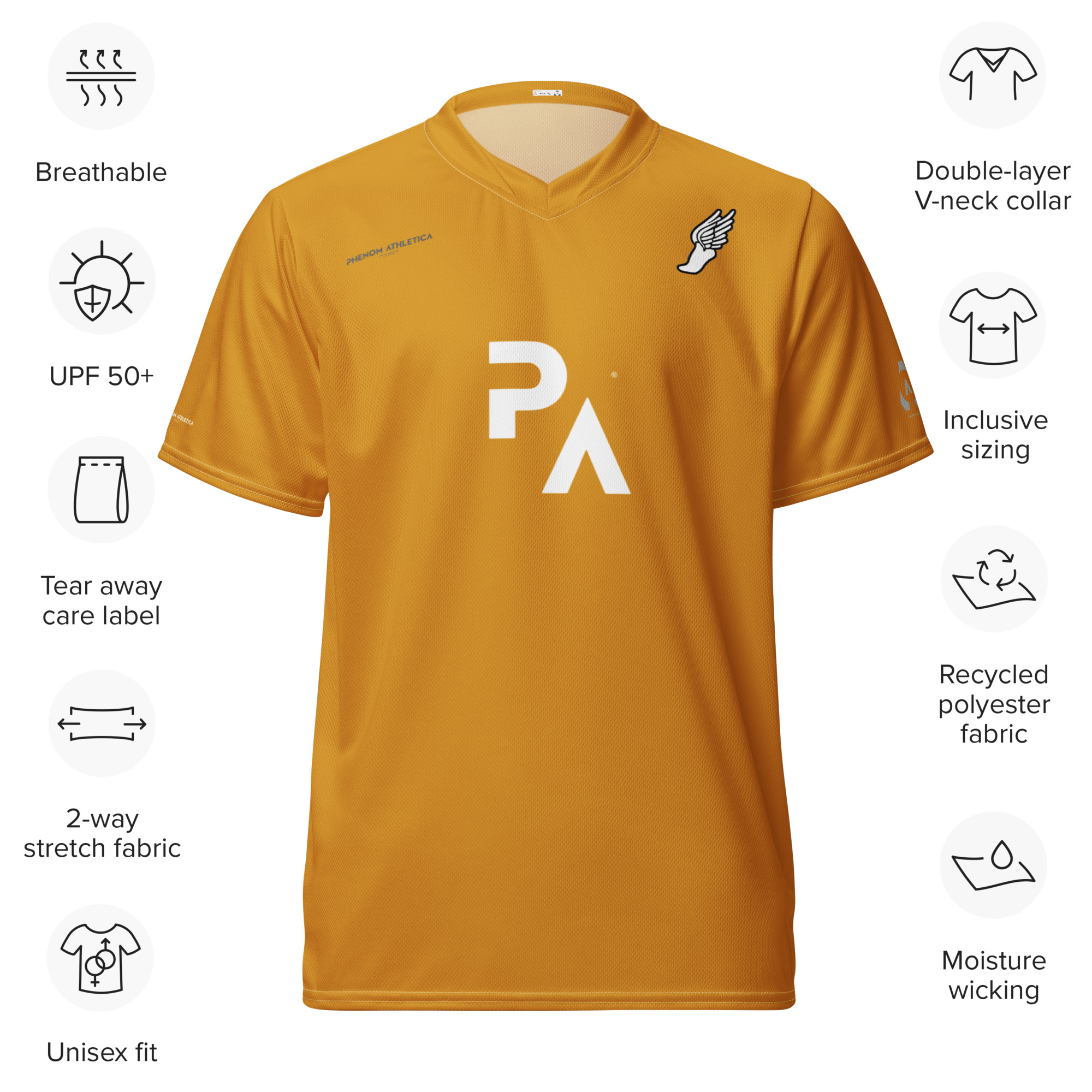 The Phenom Athletica® Wings of Hermes™ Soccer Jersey has you covered—Made of 100% VaporLift™ Tech Moisture-Wicking Fabric, this shirt is Breathable and has a Double-Layered V-Neck Collar that creates a Professional and Premium look.
