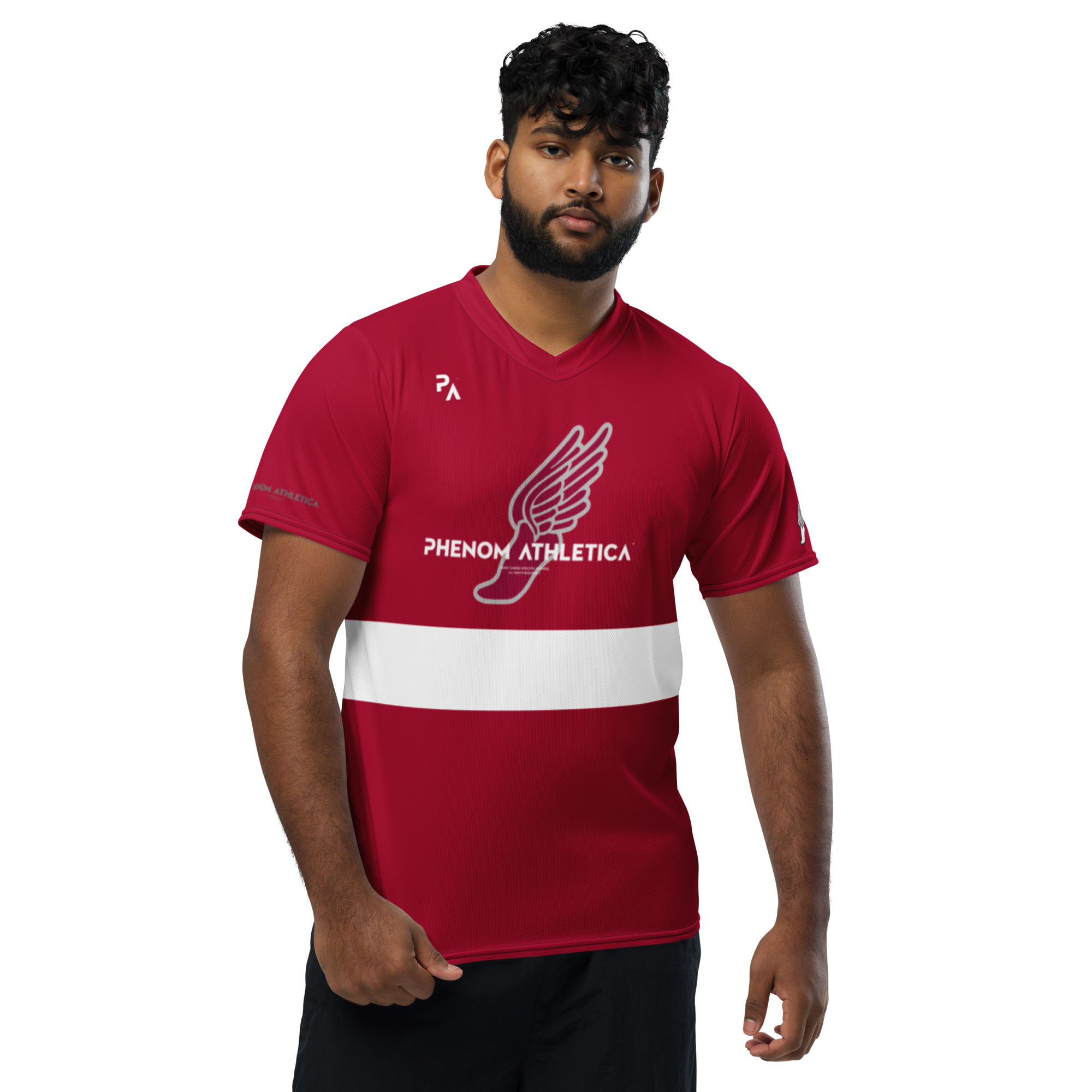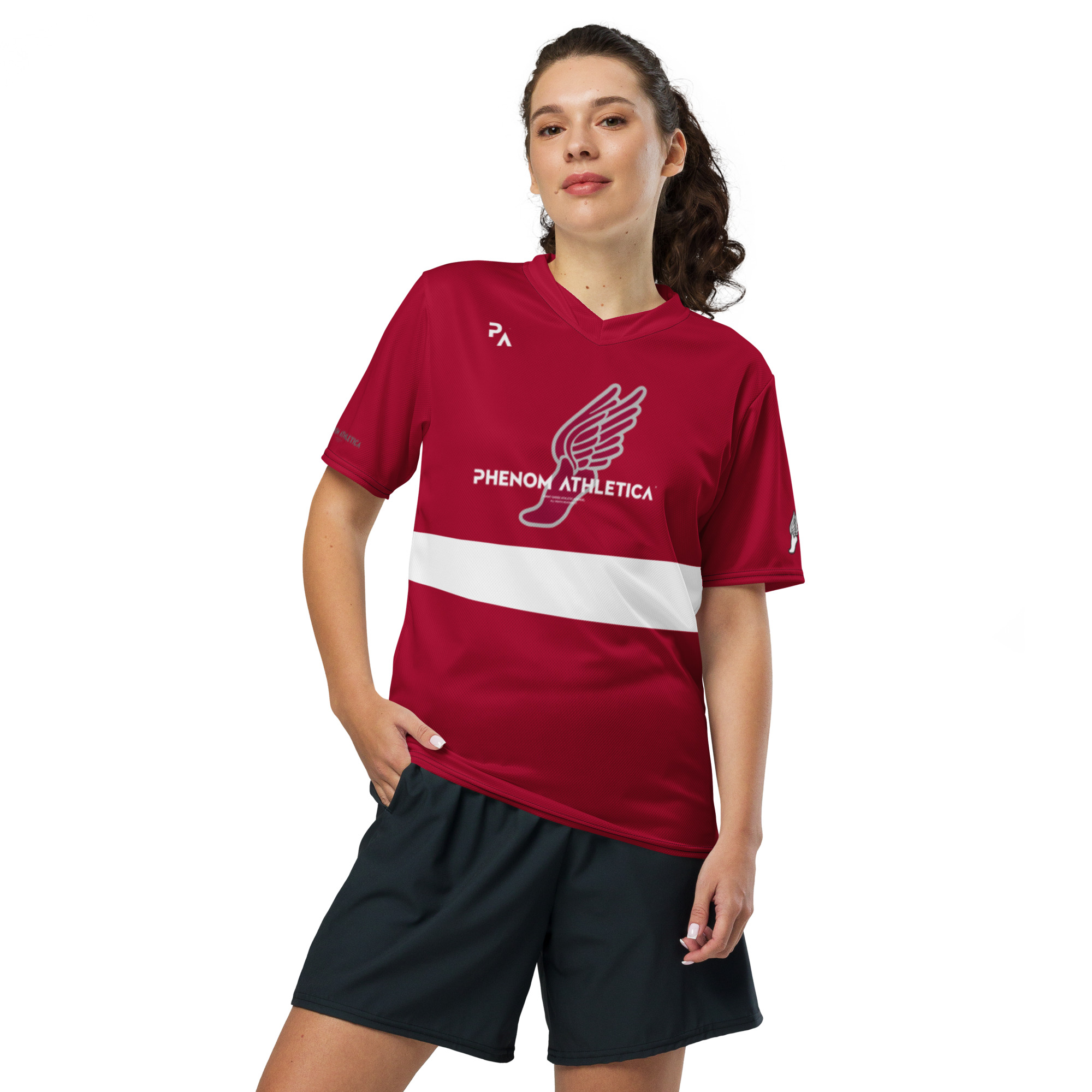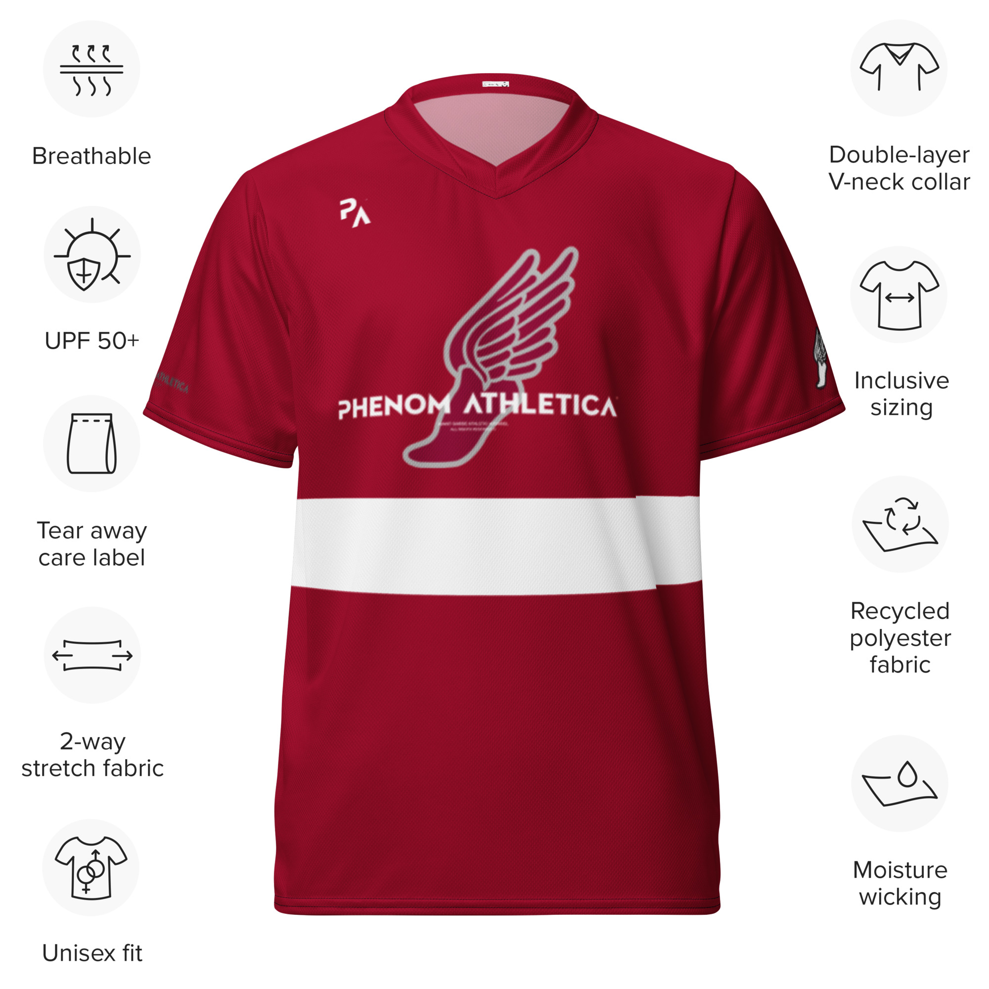 The Phenom Athletica™ Wings of Hermes™ Soccer Jersey is the Perfect Jersey We have you covered—made of 100% VaporLift™ Moisture-Wicking Fabric, this shirt is Breathable and has a Double-Layered V-Neck Collar that elicits a Professional and Premium look.